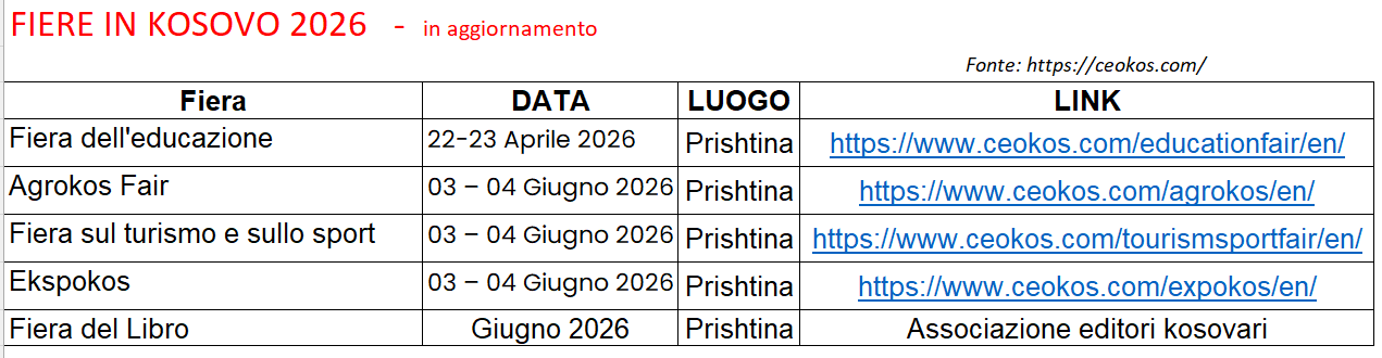 ENTI FIERISTICI ED ORGANIZZATORI IN KOSOVO
